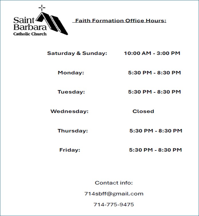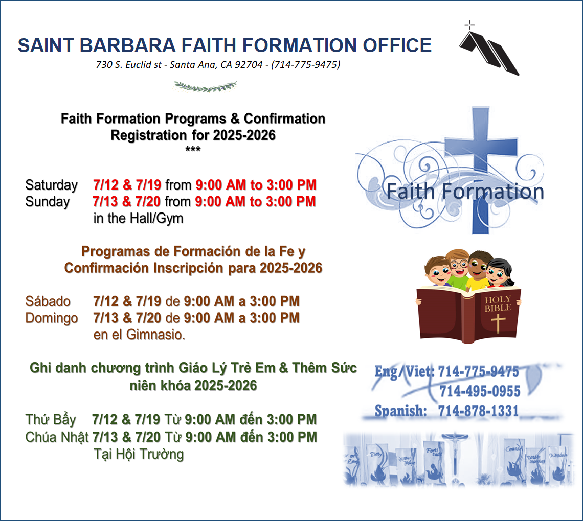 *** Note: CD & DVD for FHC and Confirmation Mass 2022 are available to pick up in Faith Formation office, on Saturday & Sunday from 10:00 AM to 3:00 PM.