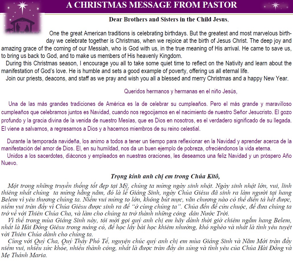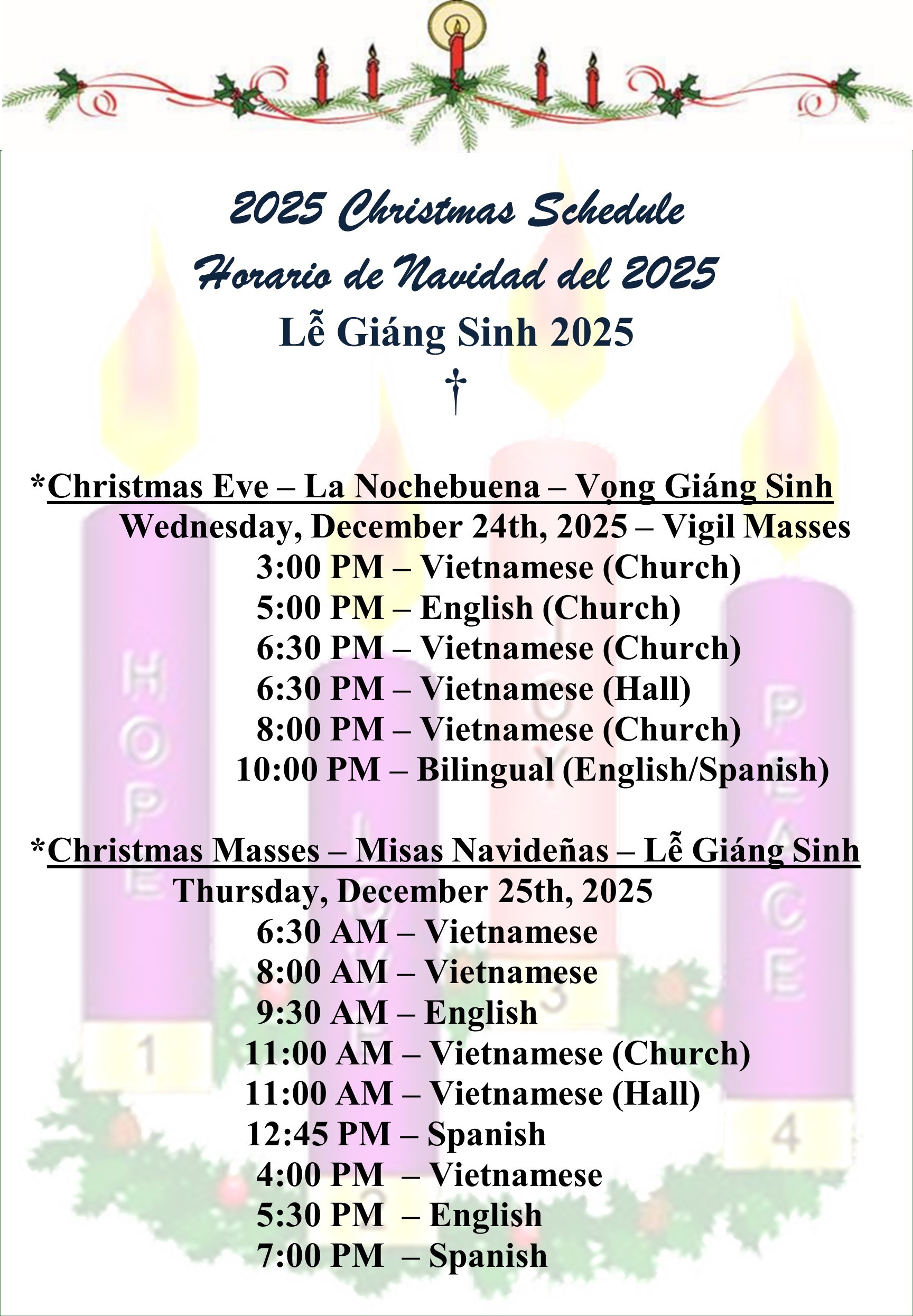 Note: The Church is closed - La Iglesia estrada Cerrada - Nhà Thờ đóng cửa: 10:00 am - 4:00 pm Monday - Friday, Lunes - Viernes, Thứ Hai - Thứ Sáu
