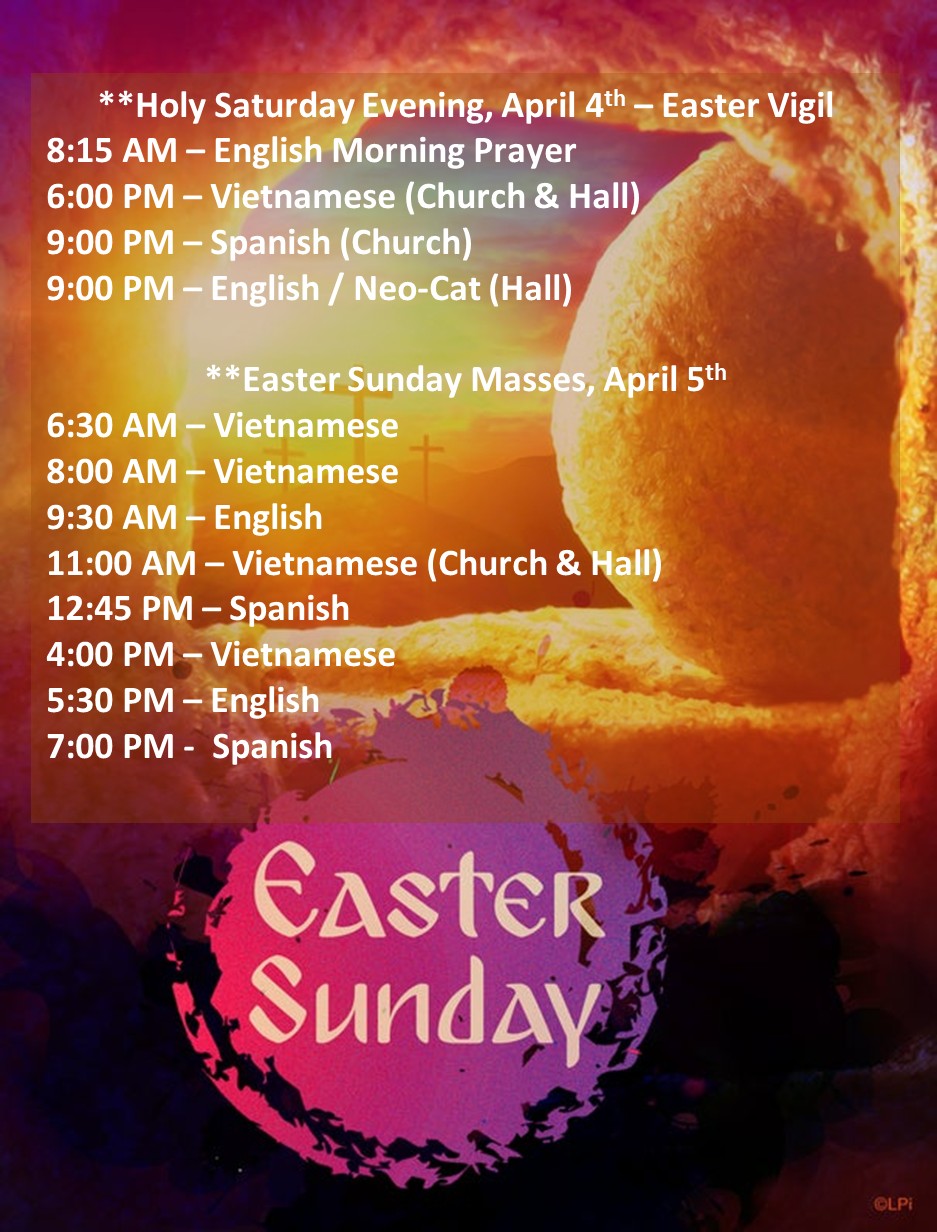 Note: The Church is closed - La Iglesia estrada Cerrada - Nhà Thờ đóng cửa: 10:00 am - 4:00 pm Monday - Friday, Lunes - Viernes, Thứ Hai - Thứ Sáu